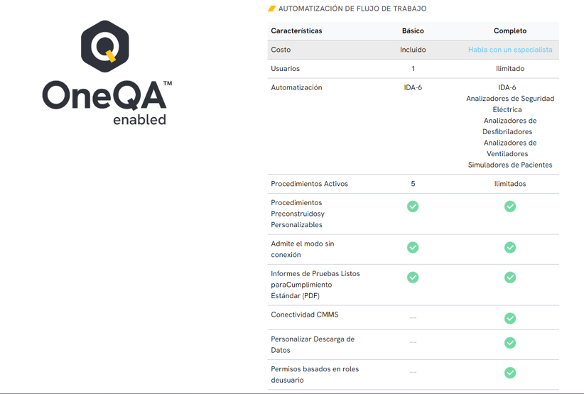 El IDA-6 viene integrado con el software OneQA. La realización de pruebas y la documentación de resultados están completamente automatizadas, lo que te ahorra tiempo valioso al mismo tiempo que aumenta la precisión. OneQA permite a los usuarios personalizar procedimientos preconstruidos en el IDA-6, y los resultados se guardan automáticamente en el dispositivo con la opción de sincronización con tu PC al mismo tiempo. La finalización de tus tareas demantenimiento preventivo se ha simplificado con nuestra interfaz de usuario intuitiva.
